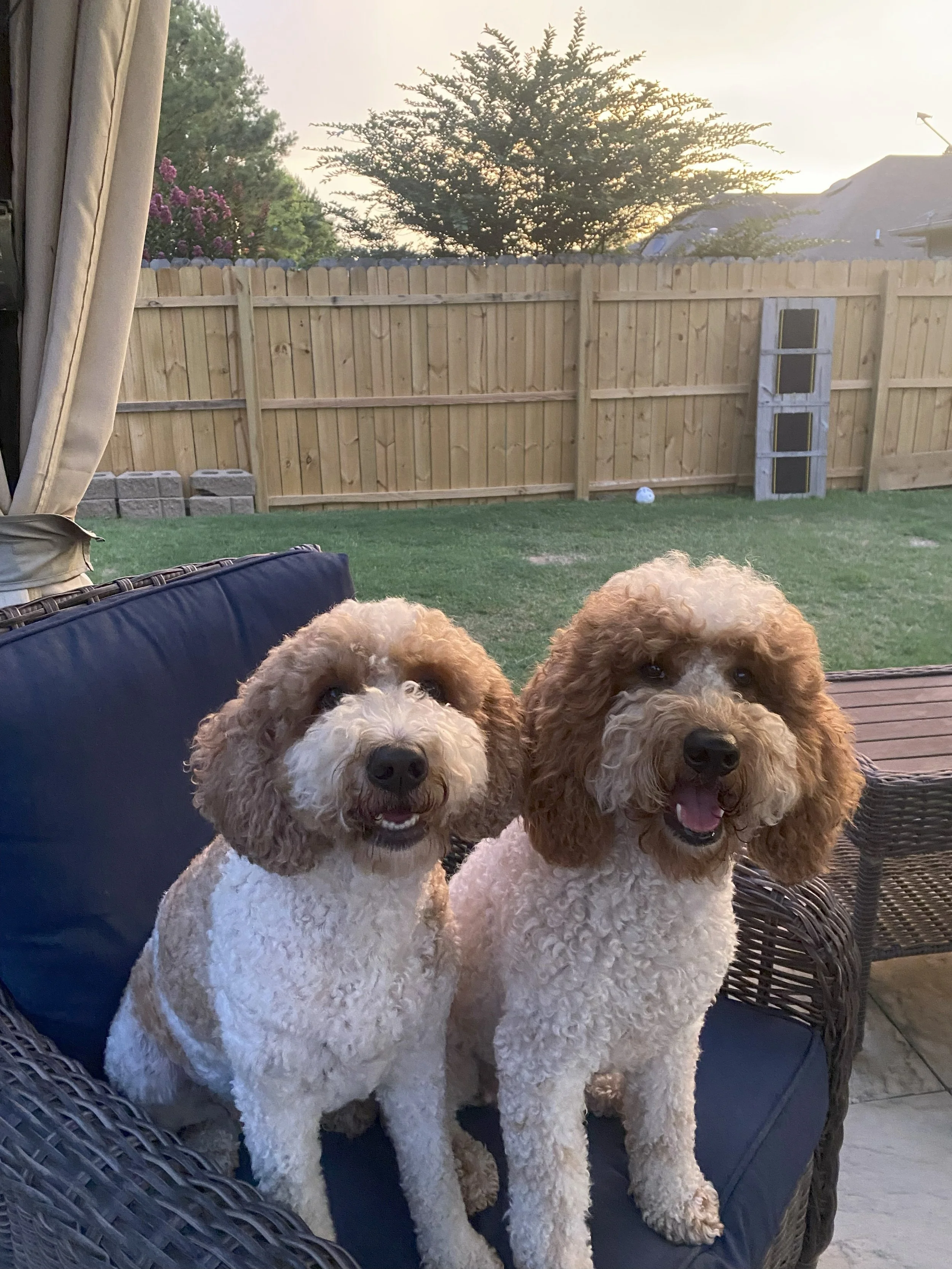 Meet Lacey Jo and Savannah, two golden doodle sisters who live for fun in Pell City, Alabama! Lacey Jo is five and Savannah is four, and together they make every day an adventure. They love bouncing along the trails at Lakeside Park, sharing silly tricks, and making everyone giggle with their goofy games.