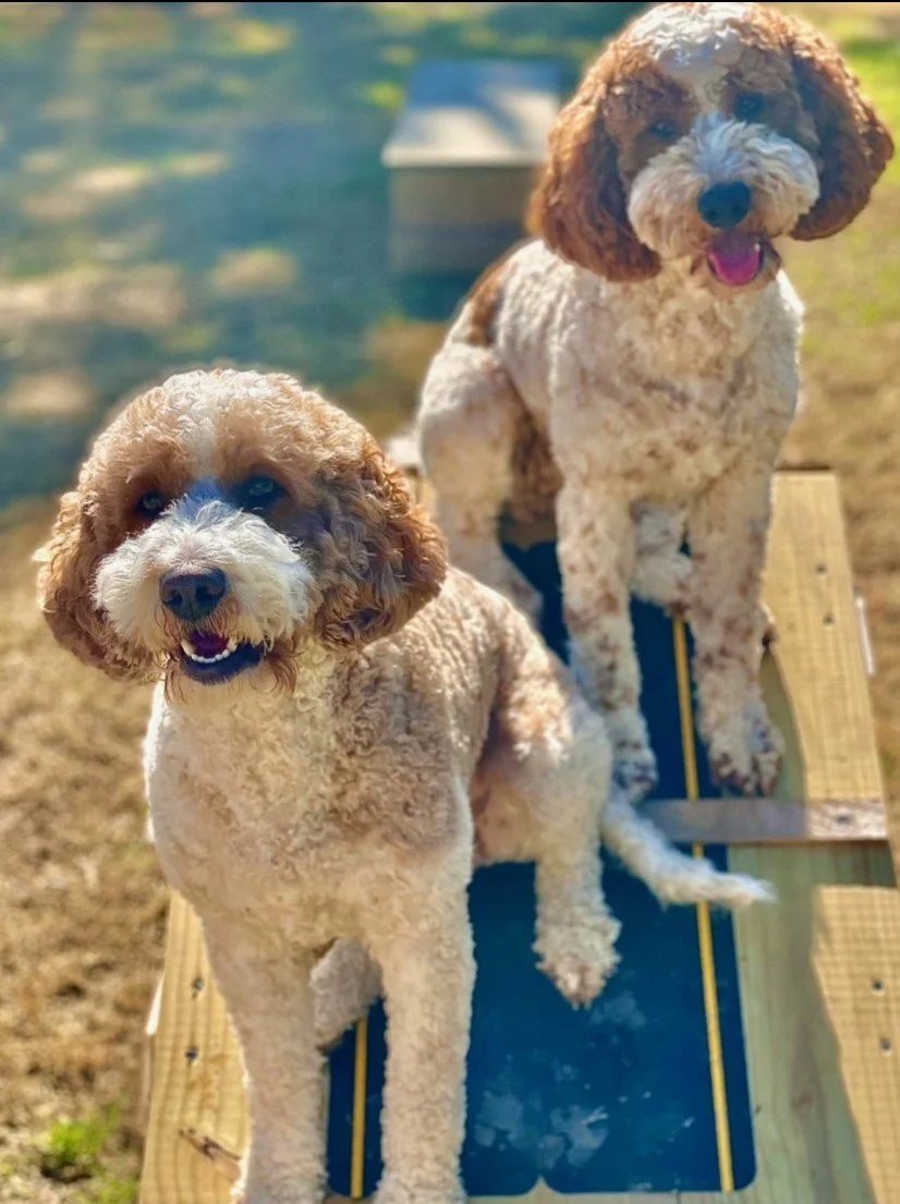 Meet Lacey Jo and Savannah, two golden doodle sisters who live for fun in Pell City, Alabama! Lacey Jo is five and Savannah is four, and together they make every day an adventure. They love bouncing along the trails at Lakeside Park, sharing silly tricks, and making everyone giggle with their goofy games.